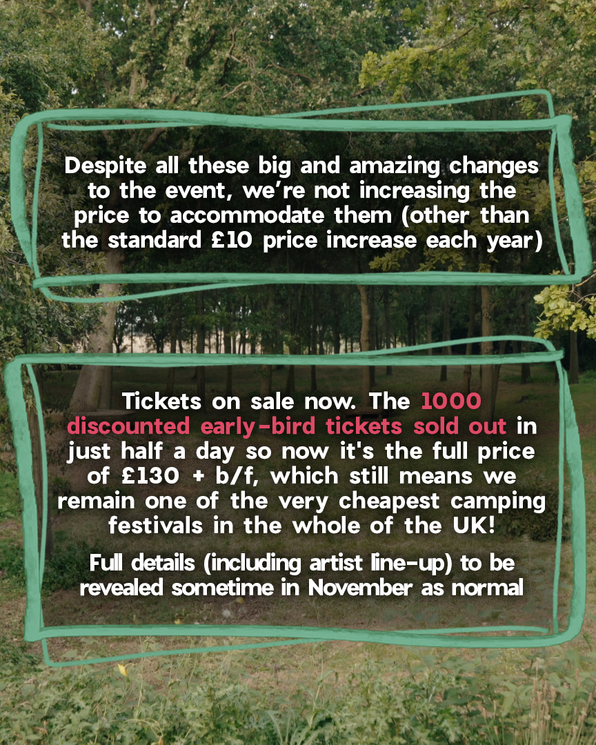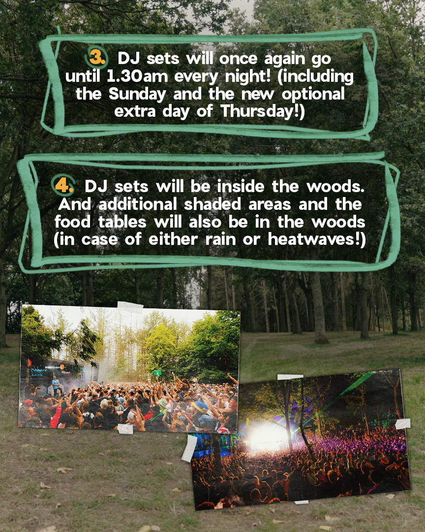 You asked for it - We're moving venue for Vegan Camp Out 2025! Back to a place with trees, shade, no wind and forest DJ sets with later and louder parties - at Bygrave Woods 🌲 With an optional whole day extra (from the Thursday) for just £20 (+b/f). And a reduced capacity of just 7500!